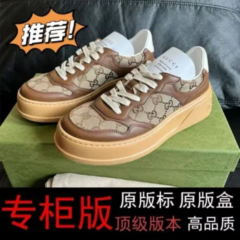Gucci Versatile Biscuit Women’s Shoes Platform Sole Heightened Leather Couple Casual Shoes
